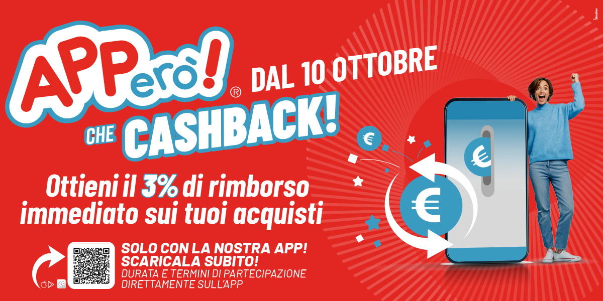 Dal 10 ottobre carica tutti i tuoi scontrini e ottieni un rimborso immediato del 3% sui tutti i tuoi acquisti! Solo sulla nostra App…