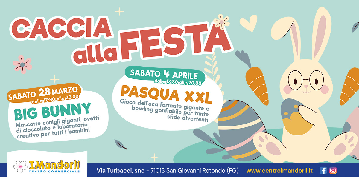 📅 28 marzo – Big Bunny, preparati a incontrare conigli giganti itineranti, ricevere ovetti di cioccolato e partecipare a divertentissimi laboratori creativi.